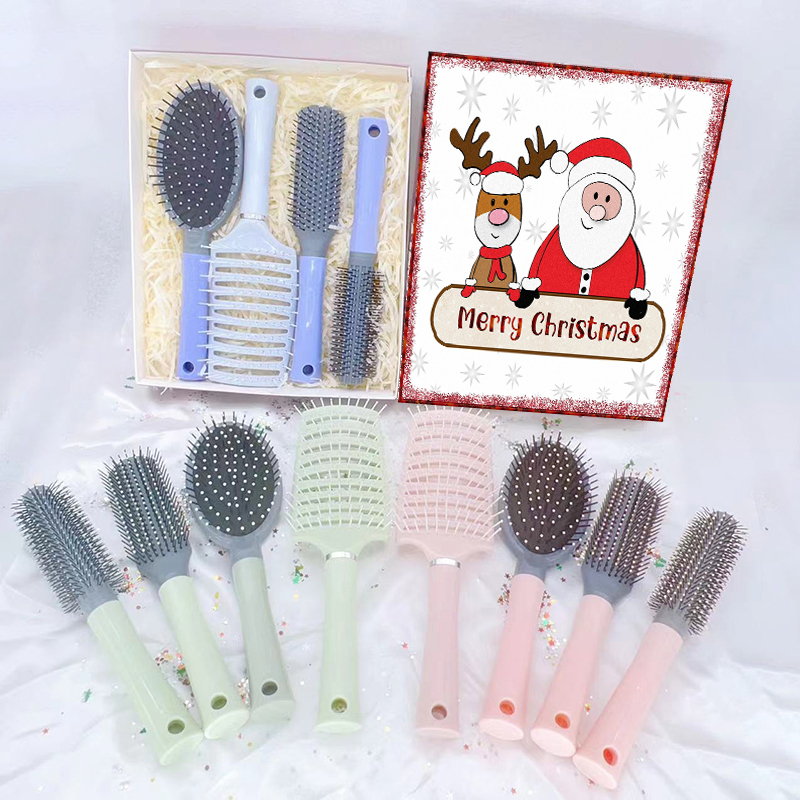 Набор расчесок для волос сочетал в себе универсальность, эргономику и привлекательный праздничный дизайн упаковки. Изделия были выполнены из износостойкого ABS-пластика, устойчивого к механическим нагрузкам и ежедневному использованию. Рабочие поверхности оснащались гибкими нейлоновыми зубчиками и металлическими штифтами с закруглёнными наконечниками, что обеспечивало бережное воздействие на кожу головы и волосы.