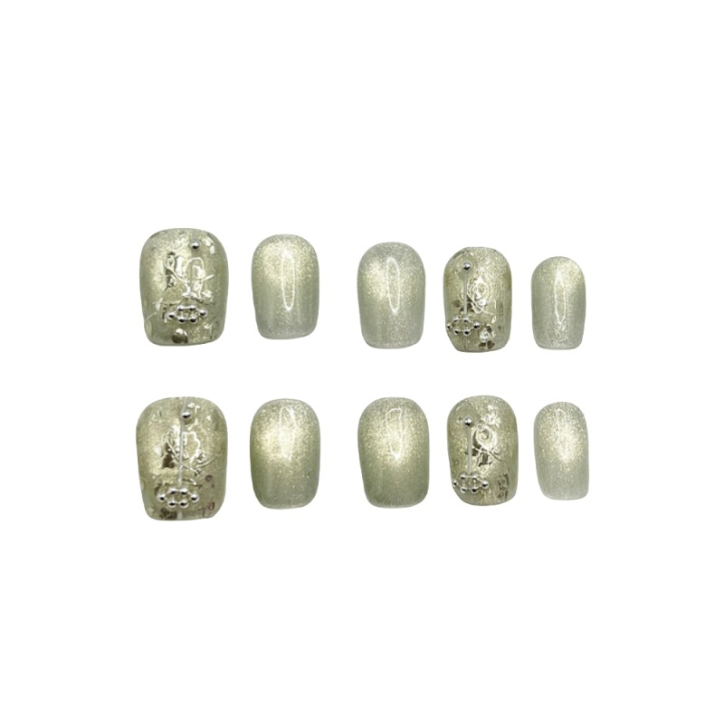 Beautichen представляет накладные ногти в нежном мятно-зелёном оттенке с градиентом и эффектом «кошачий глаз». Переливающееся покрытие создаёт глубину цвета и мягкое сияние, подчёркивая утончённость и естественную красоту рук.