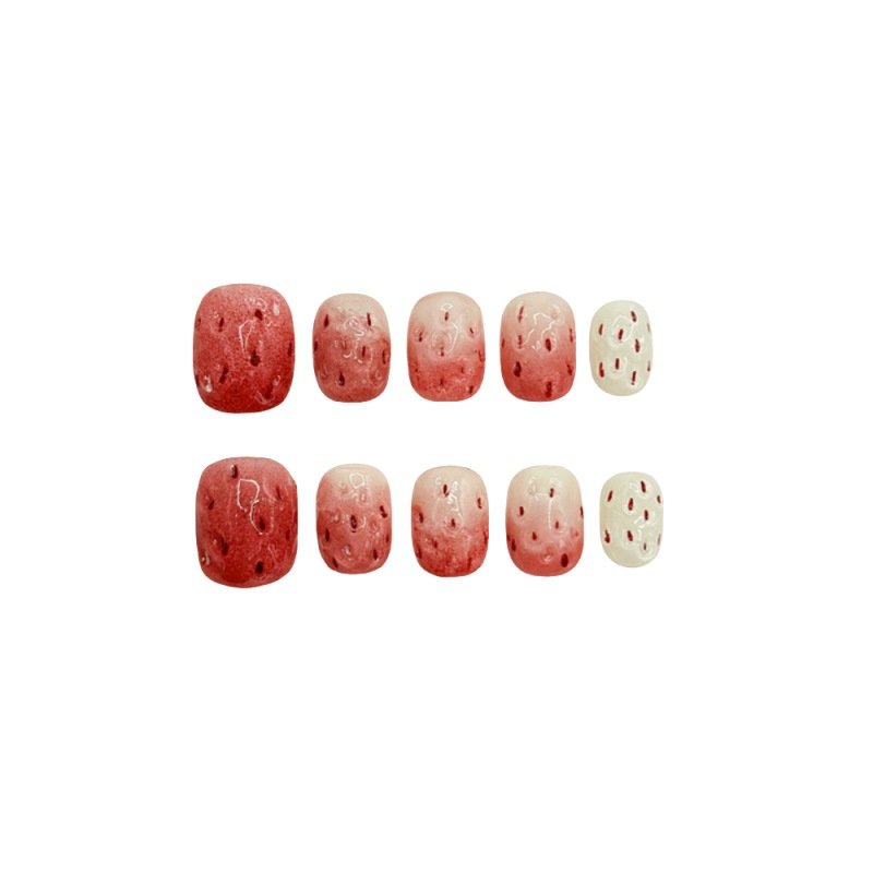 Beautichen представляет накладные ногти с фруктовым градиентом в сочном клубничном оттенке. Плавный переход цвета создаёт мягкое сияние и эффект глубины, добавляя образу свежесть и лёгкую игривость.